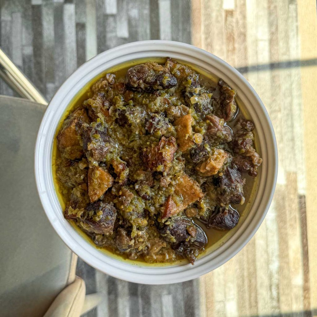 Let’s be clear from the start: this is not a gentle stew. Ayamase, also known as Designer Stew or Ofada Stew, is an experience. It’s a dish that commands attention, with its intimidating dark green color and its fierce, aromatic heat. I first had it at a cousin’s wedding, served in a small, sleek bowl next to the familiar Jollof. I took one bite and my entire palate stood at attention. The deep, smoky flavor of the burnt peppers, the earthy richness of the palm oil, the funky punch of the iru… it was complex, adult, and utterly addictive. This stew is a lesson in transformation. Through the simple, crucial act of “bleaching” the palm oil, you turn a raw, red liquid into a deep, nutty base that can stand up to the assault of peppers. It’s a stew for when you’re feeling brave, for when you want to shake up your routine. It’s the culinary equivalent of turning the volume all the way up.