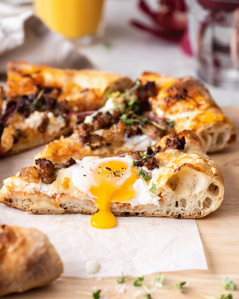 A: You absolutely can! If you’re nervous about getting the whole eggs perfectly baked, just scramble 4-5 eggs (you can add a splash of milk), cook them softly in a skillet, and then scatter the curds over the pizza right before the final bake. It’s foolproof and just as delicious