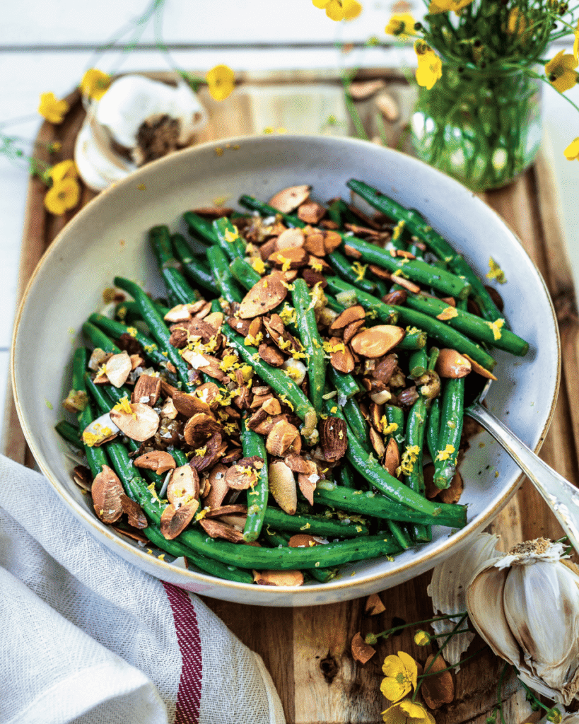 A: You can blanch the beans in advance, but do the butter + garlic part right before serving. Reheated garlic loses its sparkle, and we want sparkle.