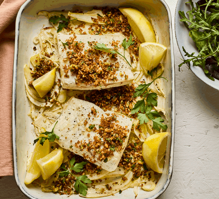 I have a thing for textures. I always have. For me, a great dish isn’t just about flavor—it’s about the crunch, the give, the creaminess, the pop. And that’s why I’m completely, utterly obsessed with this halibut. The fish itself is this gorgeous, firm yet flaky, mild canvas. But the star of the show, the thing that will have you making this on repeat all summer, is what goes on top. We’re not talking a squeeze of lemon. We’re talking a generous, glorious pile of Fennel and Walnut Pangrattato. “Pangrattato” is just a fancy Italian word for toasted breadcrumbs, but what we do to them… well, it transforms them into something truly magical. It’s the poor man’s Parmesan, my Nonna used to say, but I think it’s so much more than that. It’s the secret to turning a simple piece of fish into a meal you’ll dream about.