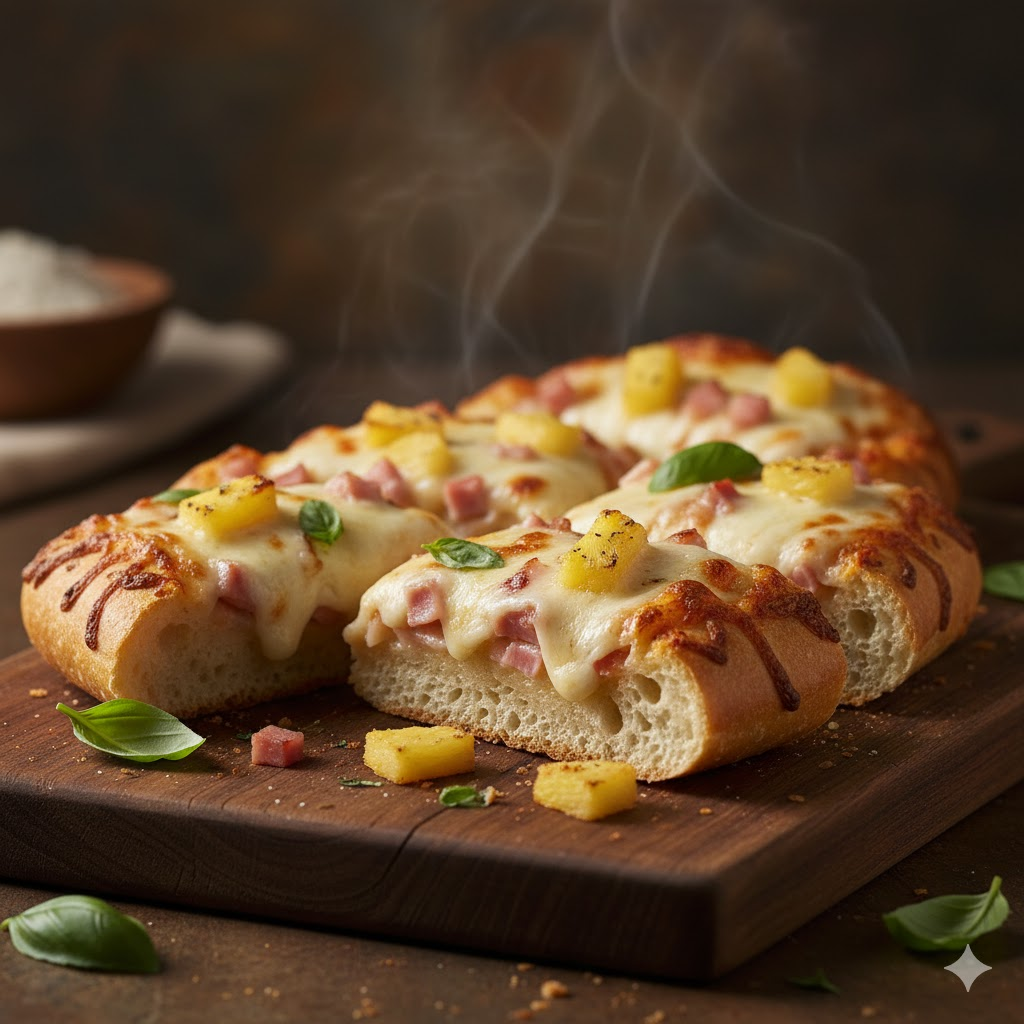 Okay, so I’m gonna tell ya something kinda blasphemous, but stick with me: Hawaiian pizza is objectively a top-tier pie, and I will fight anyone who says otherwise. But, look, sometimes you just can’t wait for the dough to rise or even, like, thaw—you need that salty, sweet, cheesy hit now. This isn’t a gourmet torta or a Neapolitan masterwork; this is a panic-button dinner that tastes like a Friday night. I literally dreamt about the combination of crusty, toothsome bread and that salty-sweet ham, and I woke up, stumbled into the kitchen, and accidentally invented my new favorite thing. And here’s a secret: I almost forgot the ham the first time, like, the key ingredient! I only remembered when I was halfway to the oven, and I had to frantically sprinkle it on top. It still worked, which tells ya how truly chaotic-good this recipe is. Honestly, if you don’t use French bread, don’t even bother. It’s the crunch factor that changes the whole darn game.