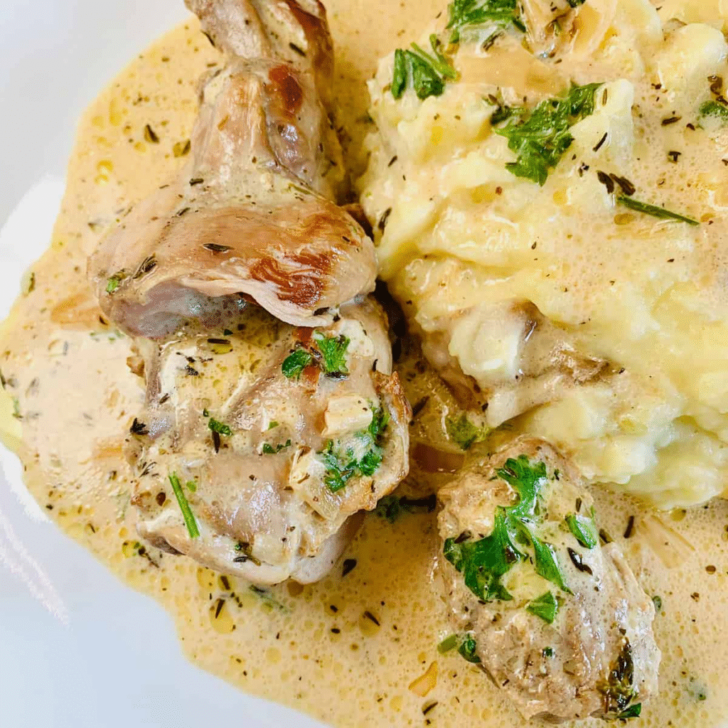 There’s a moment in every cook’s journey when they realize that rabbit isn’t just a novelty—it’s one of the most delicious, tender, and sustainable meats you can cook. This Burgundian classic is the perfect introduction. The rabbit simmers in a creamy, tangy mustard sauce that somehow manages to be both rustic and elegant. The first time I made this for friends who were skeptical about rabbit, they became instant converts. It’s a dish that celebrates French country cooking at its finest.