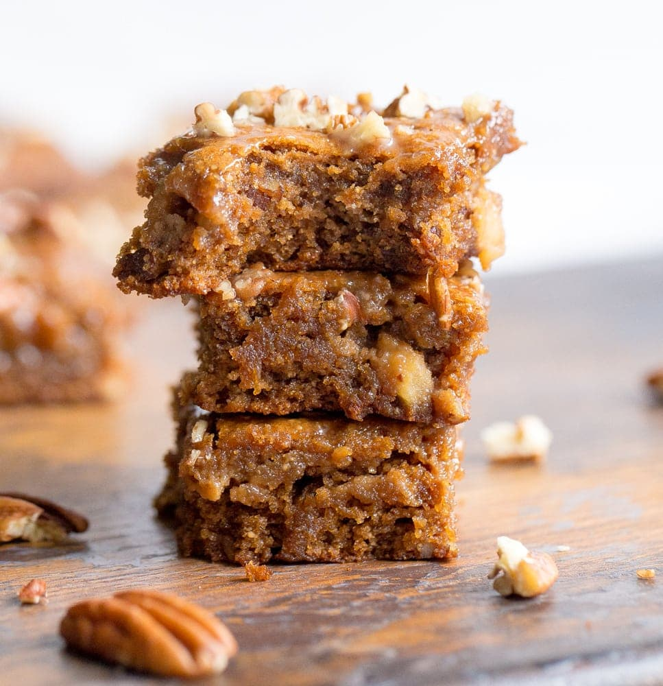 Okay, listen up, because if you thought the apple version was a mood, this is an entire lifestyle. Maple Pecan isn’t just a flavor combo; it’s a personality. It’s what happens when the rich, nutty brown butter meets the dark, smoky caramel of real maple syrup. I’m talking about a blondie that’s so deeply fudgy, you’ll swear you accidentally added chocolate.