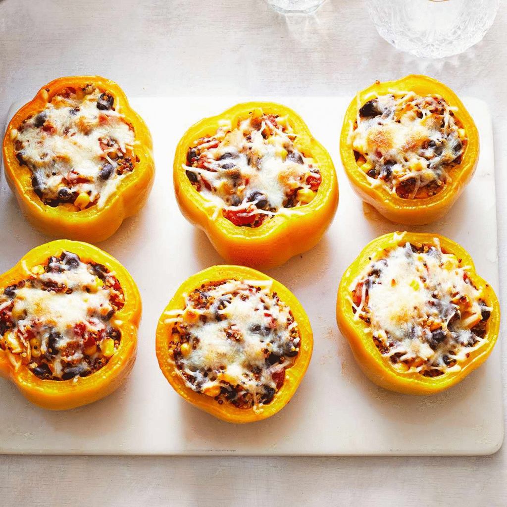 A: Totally preppable, and way smarter than my “hot only” hot-take phase—stuff and bake fully, cool quick (fridge straight, no steam trap), store in airtight with parchment between to avoid cheese glue. Reheats oven at 350°F 10 minutes or microwave covered—stays chewy, peppers hold snap if not nuked to death. I prepped a tray Sunday, zapped for lunches with avocado smash—flavors pop brighter day two, lime keeping it fresh. Just add extra cilantro post-heat; wilted’s a texture crime. Batch it, boss your week—you’re basically a quinoa queen now!