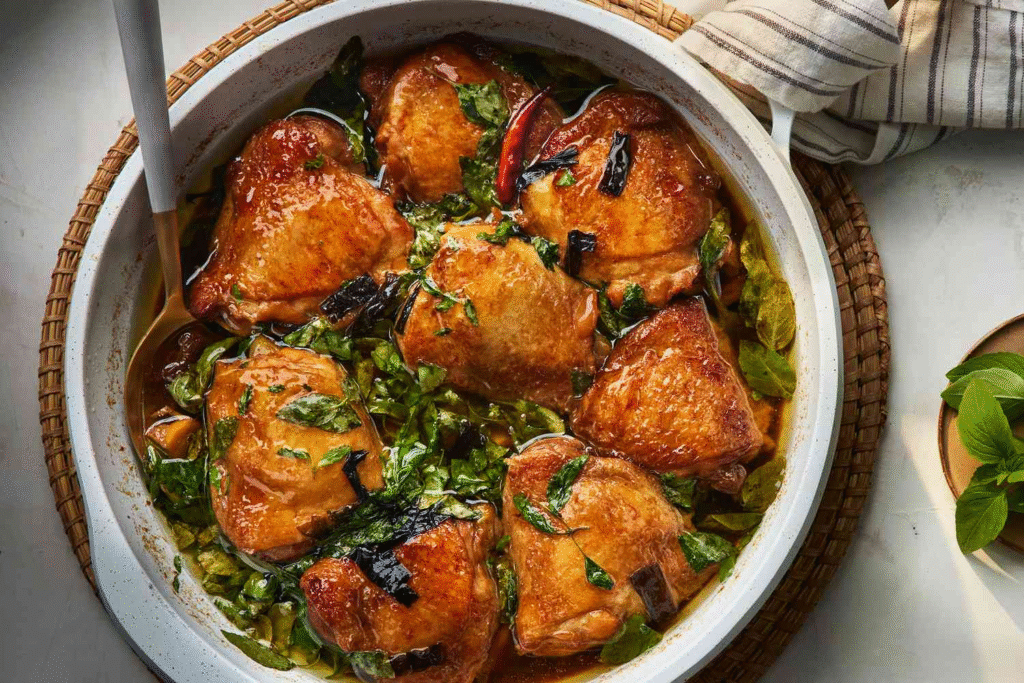 Halfway through, toss in the basil. Yes, it looks messy. Yes, it smells amazing. Yes, it’s okay to taste a little sauce before serving—just don’t tell anyone. The basil wilts slightly, adding a fragrant brightness that contrasts perfectly with the rich, savory chicken.